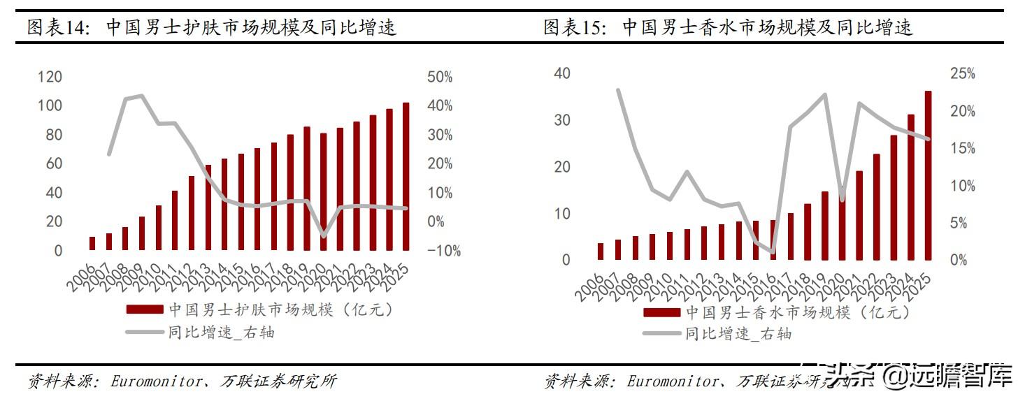 男士香水、护肤品类快速增长,男性美妆消费的平均价也高于女性。