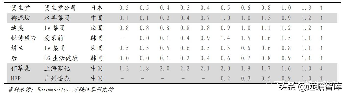 中国化妆品人均消费仍较低,对标世界发达国家有5倍发展空间。