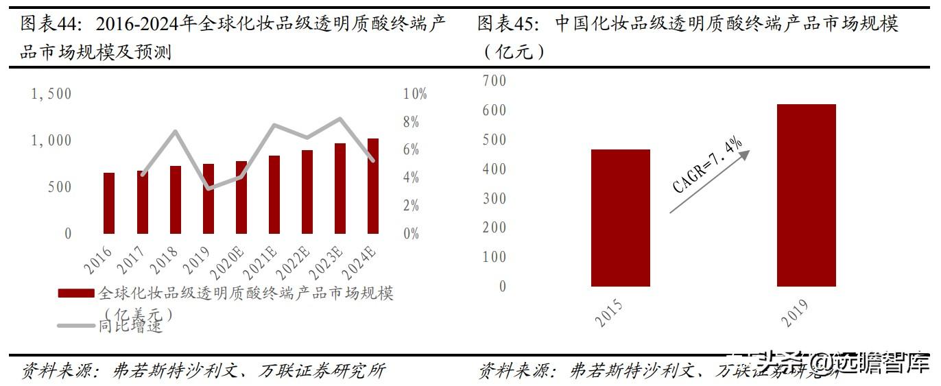 细分:中国化妆品级透明质酸终端产品快速增长,国内厂商纷纷布局下游功效性护肤品牌。