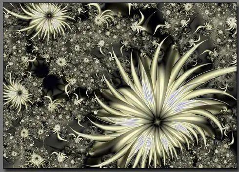 分形几何学是一门以不规则但具有自相似结构的几何形态为研究对象的几何学,在物理学、生物学和医学等领域有重要应用。“分形艺术”是用分形几何理论产生图像,然后用数学方法对放大区域进行着色处理,就变成一幅精美的艺术图案,这些艺术图案被称之为“分形艺术”。
