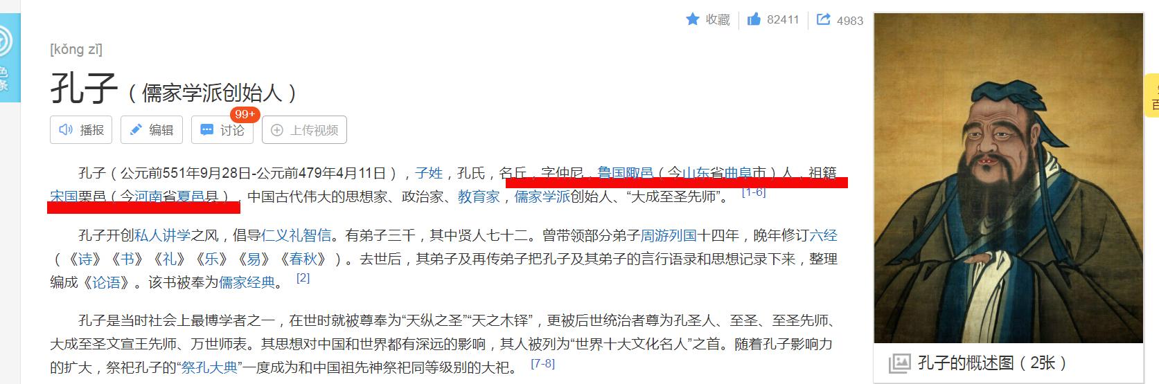 春秋时期的孔子,文字资料中介绍他是鲁国陬邑(今山东省曲阜市)人,祖籍宋国栗邑(今河南省夏邑县)。这就很意思了。这段文字介绍,即标明了孔子的出生地是山东省曲阜市,但是也标明了他的祖籍是河南省夏邑县。不知道孔子的后人在填写籍贯的时候,是填写山东曲阜呢,还是填写河南夏邑呢?