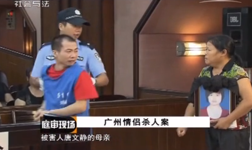 被害人父母带着唐文静的遗像出席了庭审,二老情绪在见到被告人的时候终于无法抑制,唐文静的母亲甚至激动地站起来,推搡穿着囚服戴着手铐的王江勇。