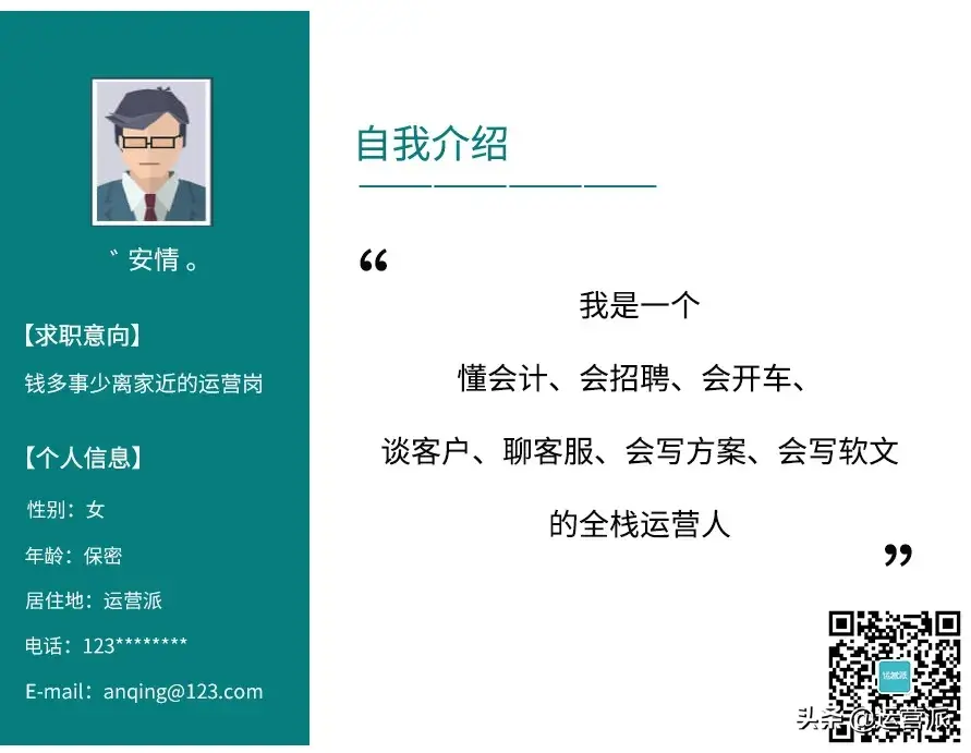 众所周知,一个互联网公司除了产品、运营、设计、开发之外,还有其他综合管理岗位,例如:人事、财务、行政等等。接下来展示的这个简历来自@安情,是一位有能力同时兼任财务、人事、行政、运营、客服的应聘者。