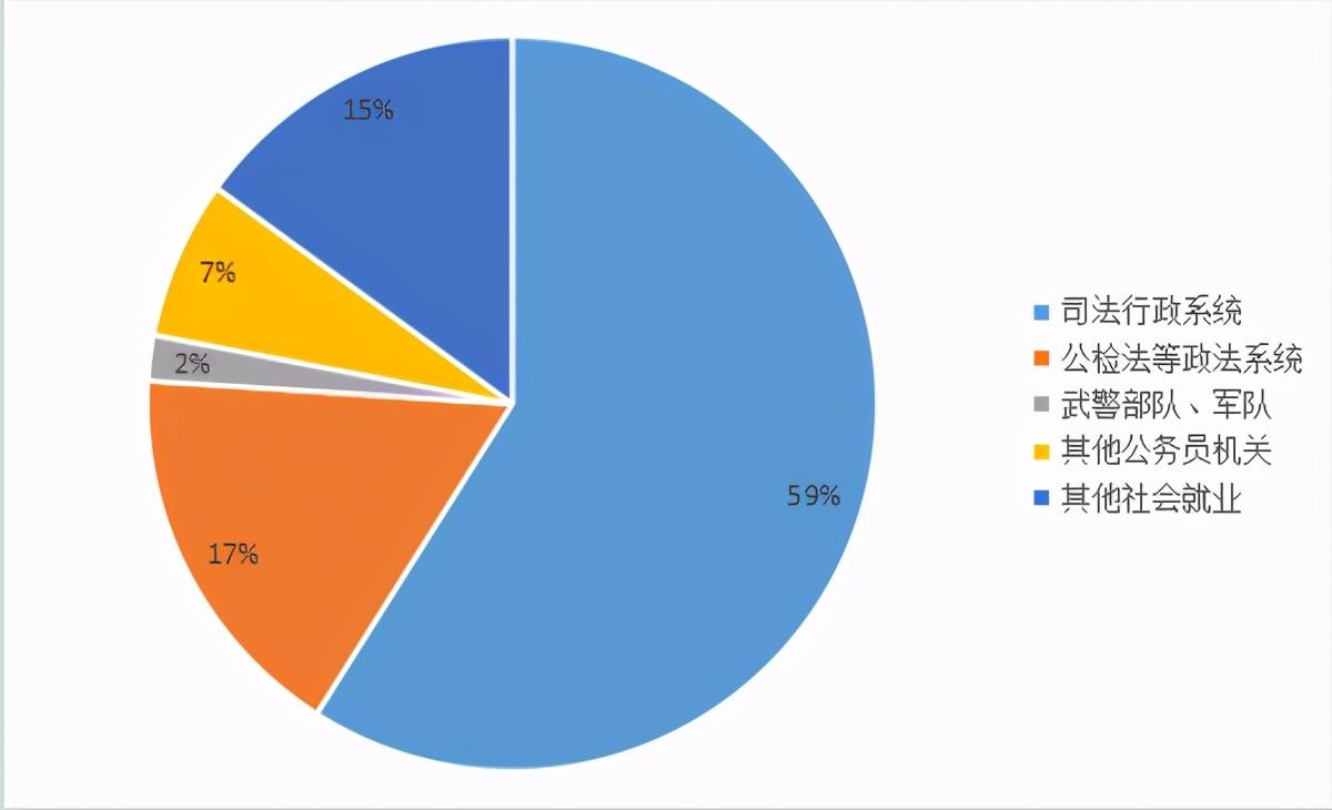 该校2019年毕业生人数共有1515人,其中本科毕业生1464人,研究生51人。毕业生就业岗位以公务员为主,就职司法行政系统的人数占就业总人数的59%,到其他政法系统就职的人数占17%,到其他类型公务员单位就职的人数占7%,总计公务员职位就业人数占就业人数的83%。