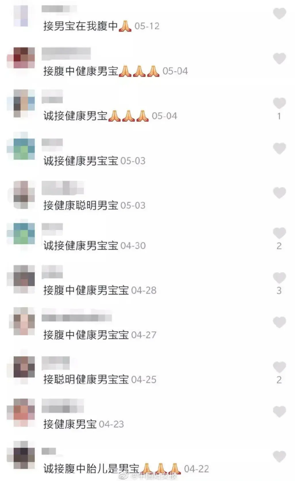 那阵势,简直像一场互联网大型“求男宝”现场,而其中每个人都抱着“一定要生儿子”的目标,发帖和留言中无不透露着“传宗接代”、“延续香火”这些落后陈旧的重男轻女观念。