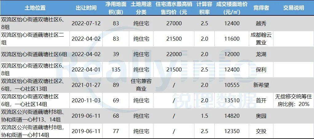 各路房企一致看好怡心湖发展潜力,拿地积极性高涨,土地成交价就是最直接的见证。锐理君统计发现,怡心湖规划的“7”字形区域内自2019年开始出让的每一宗地都是“万元地”,土地成交楼面地价超过部分主城板块。目前,已有万科、香港置地、金科、龙湖、新希望、奥园、蜀道集团、首开、越秀等企业组成了强大的房企阵容。
