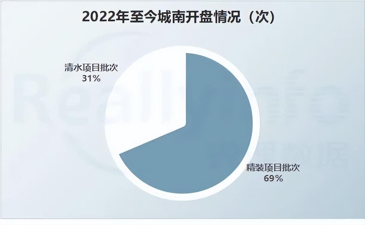 锐理数据显示,截至8月14日,城南今年共推售了72批次精装项目,清水项目只有22批次,只占总量的三分之一——精装房源已经成为市场的主流和溢价的主要手段。而根据最近五次双集中供地的情况来看,城南地块基本都要求成品房建设。