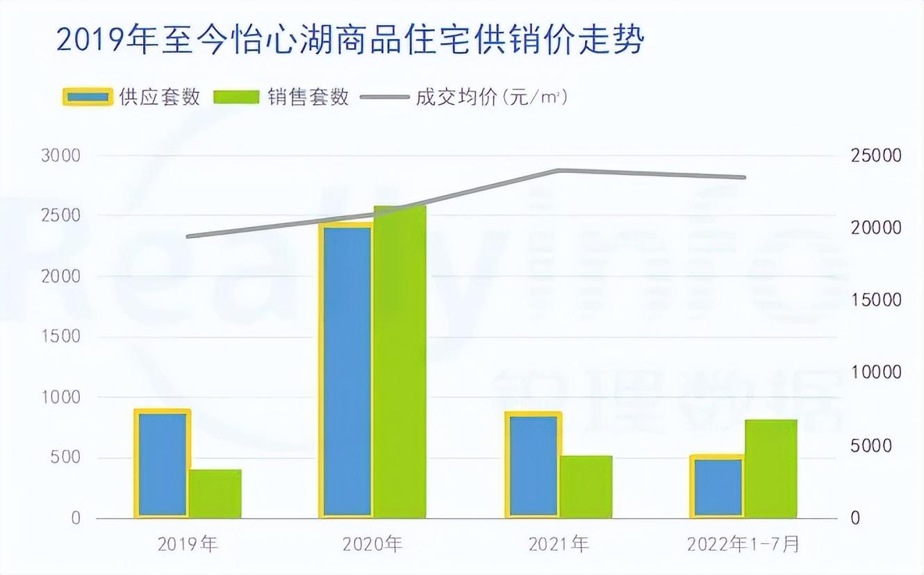 土地成本迅速上涨,直接拉动房价上升。2019怡心湖住宅成交均价19354元/㎡,在2020年第2季度均价突破20000元/㎡,2022年1-7月这一数据达到23421元/㎡。另外,怡心湖地块目前最高清水限价已达到27000元/㎡,如果算上精装,其单价即将来到3字头。数据显示,2022年1-7月怡心湖住宅供销比仅为0.6,新希望锦粼湖院此次供应200多套大平层,也能解渴市场。
