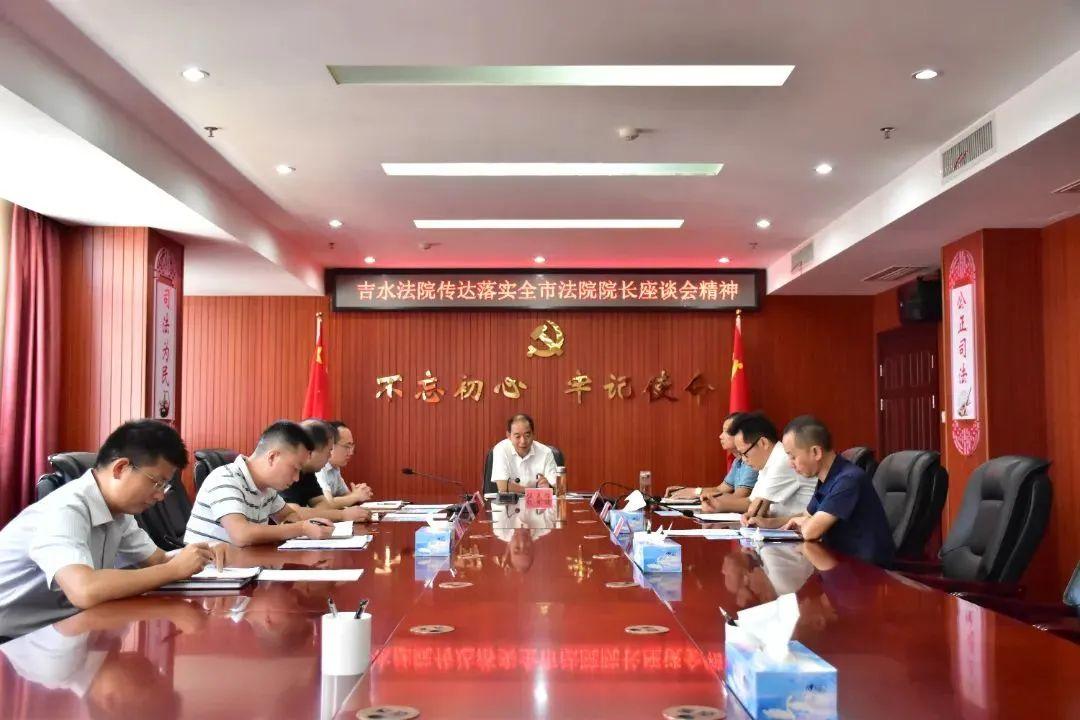 8月8日,吉水县法院召开党组会议,传达学习全市法院院长座谈会暨全市法院文化建设工作会议精神,研究部署贯彻落实工作,党组书记、院长伍春辉主持会议并讲话,院领导班子成员参加会议。