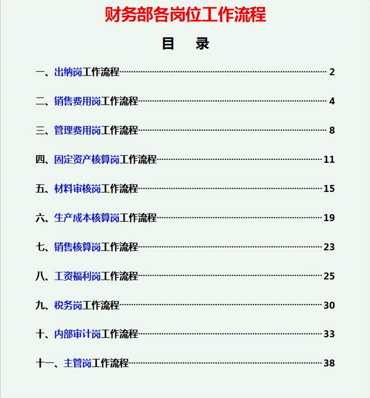 前段时间,公司招聘了几个财务实习生,由于一点实操经验没有,就安排些基础工作,装订凭证、打印之类的,我们财务经理还专门整理了一套财务每月工作流程手册给这些新人,一共40页的内容,从发票到报税,完整全流程,非常实用,下面一起来看一下吧。