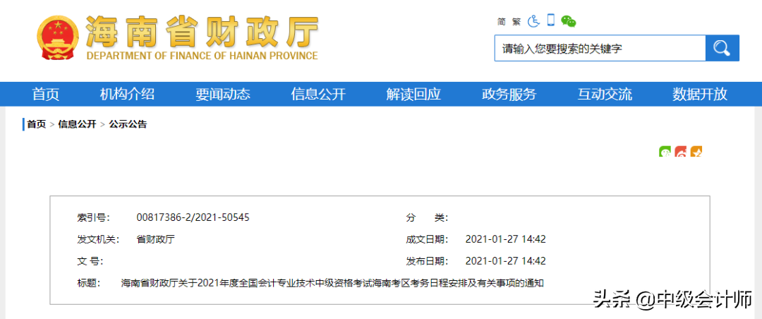 浙江省2021年度中级会计资格考试报名时间为2021年3月11日10:00—3月22日16:00。