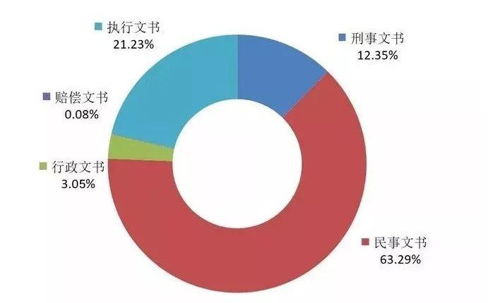▲公开裁判文书类型分布(图片数据取自2018年12月25日中国裁判文书网首页公开数据)