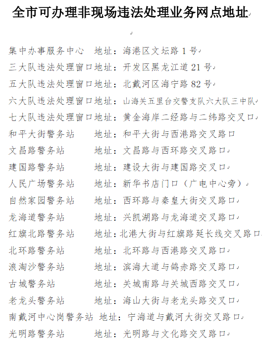 文昌路警务站、人民广场警务站、古城警务站、南戴河中心岗警务站
