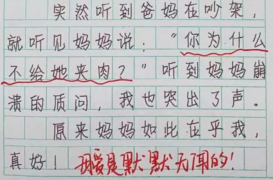 小学生既然能写出这样的作文来,就说明是真实存在的,光凭小学生的想象力,是远远不够的,而身为家长,身为小学生的榜样,家长这样做对吗?这就是给学生提供的成长环境吗?所谓的“家庭教育”又从何体现。