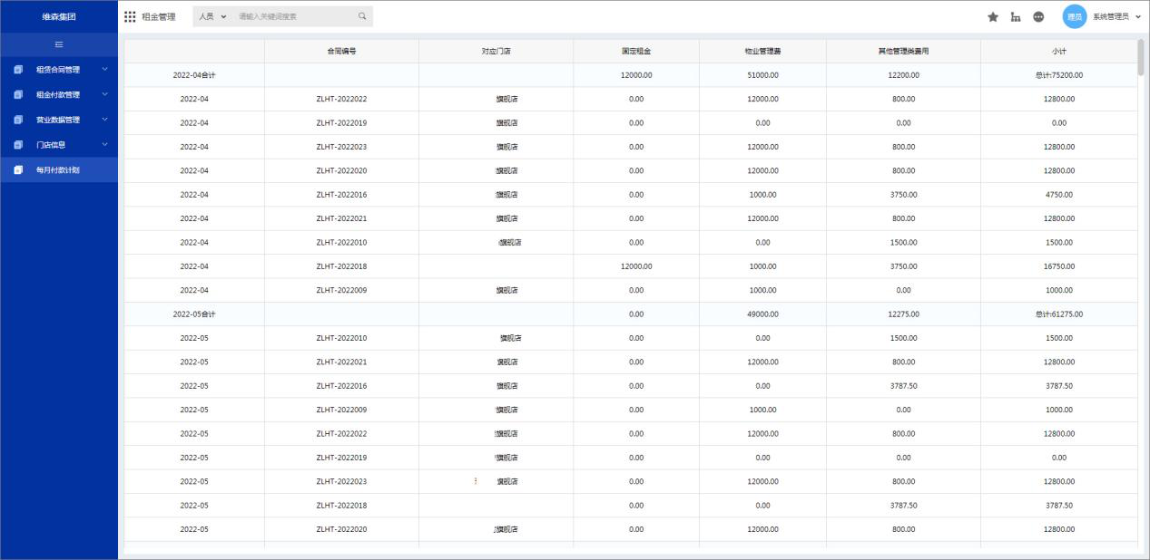 门店租金可以根据约定的规则,自动计算付款周期要支付的金额,包括固定租金、物业费和其他类型费用。