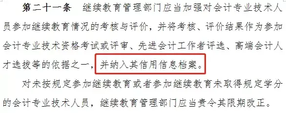 从财政部文件规定来看,用人单位会将会计人员的继续教育情况作为考核评价、岗位聘用、升职的重要依据,除此之外,继续教育管理部门还会降会计人员的继续教育情况纳入信用信息档案。在信息一网通的时代,想逃避继续教育是不可能的。