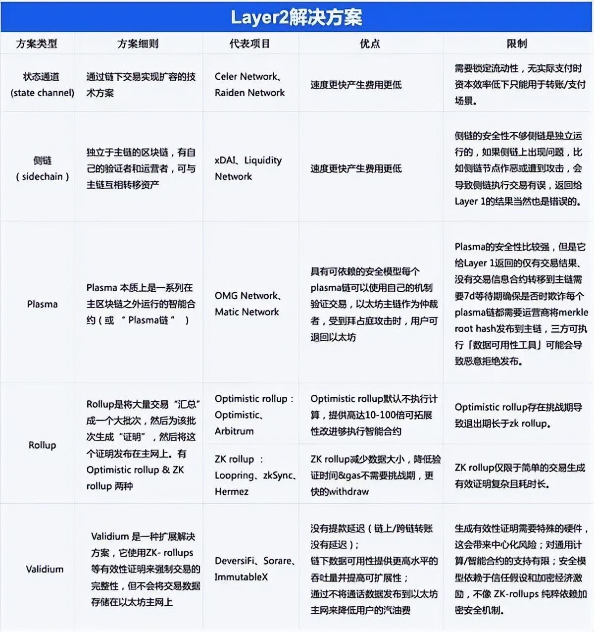 目前以太坊 Layer2 有几种解决方案,分别是:状态通道、侧链、Plasma、Rollups、Validium 和混合方案等。