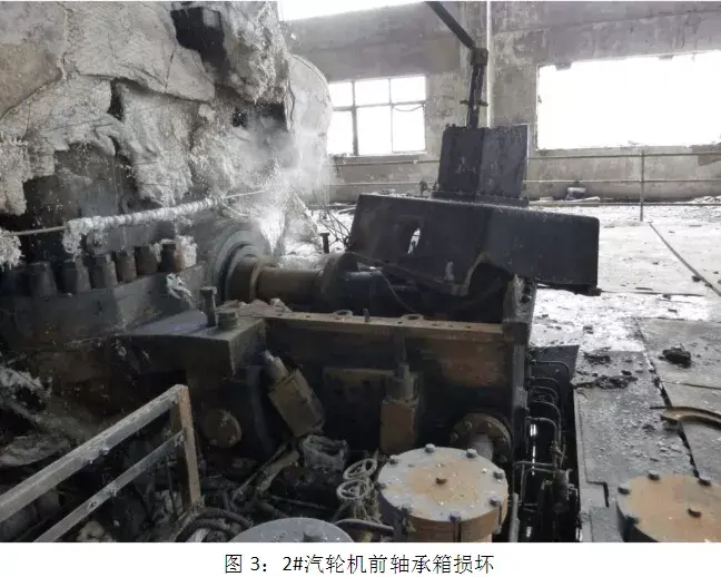 在此次重大的设备事故中2号汽轮发电机组因发生严重超事故而毁坏报废。因2号汽轮机前后轴承箱燃烧爆炸引起生产厂房大面积过火,造成零米层辅机设备和相邻的3号汽轮发电机组不同程度受损,其中大火还造成电缆层、中央控制室机房等设备受损。因生产厂房内发生剧烈爆炸造成厂房窗户及房顶受损严重,经初步估算,此次重大事故造成设备损坏的直接经济损失约900万元。