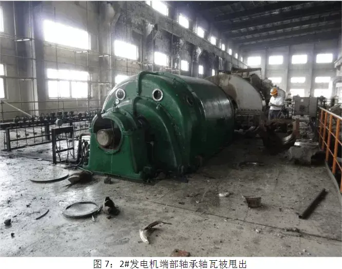 根据电厂汽轮机厂房监视录像记录,2015年6月11日20点09分29秒(显示时间与DCS时间不同步)控制室运行人员发现2号发电机负荷瞬间甩至零,其中一名运行主值跑出主控室到就地检查,在接近2号汽轮机头时前轴承箱就发生剧烈爆炸,所幸未伤及人员性命。