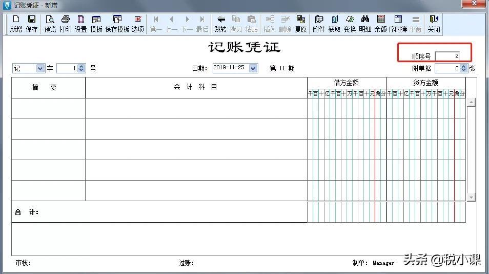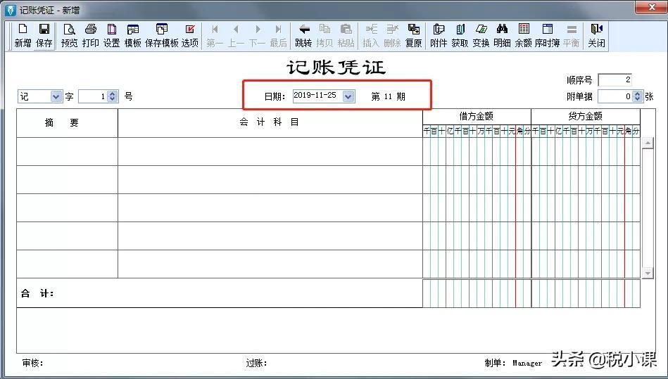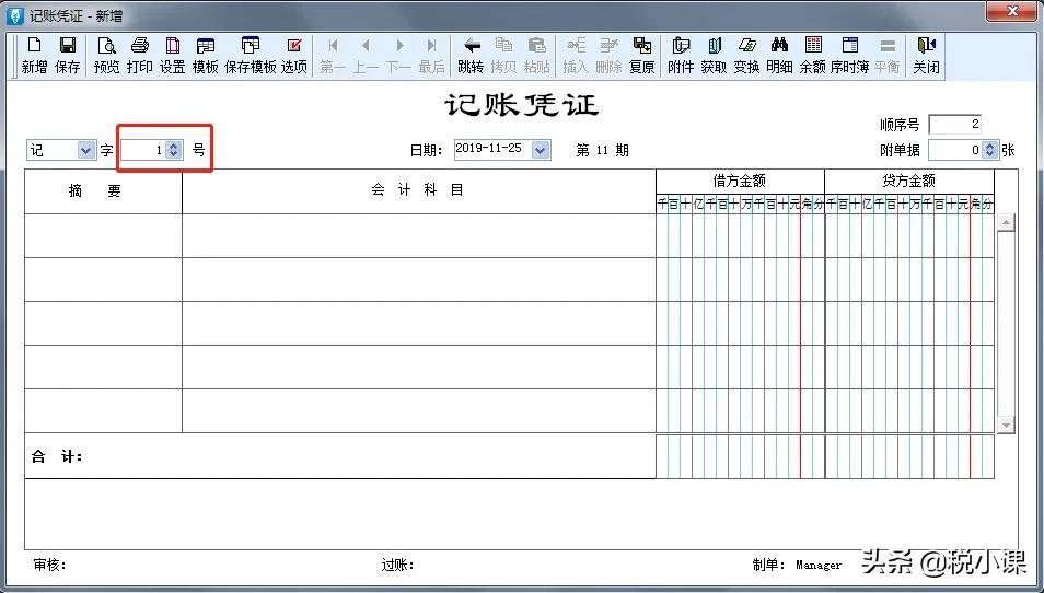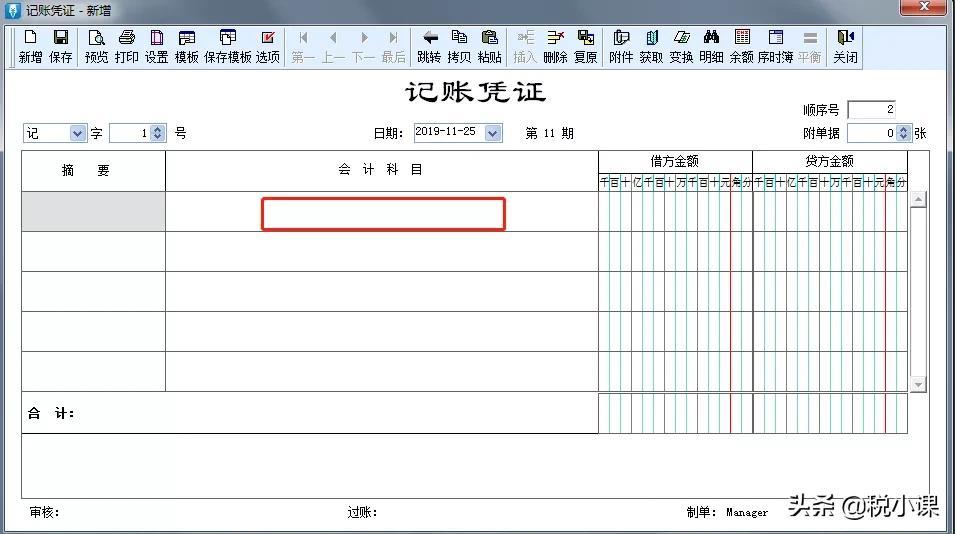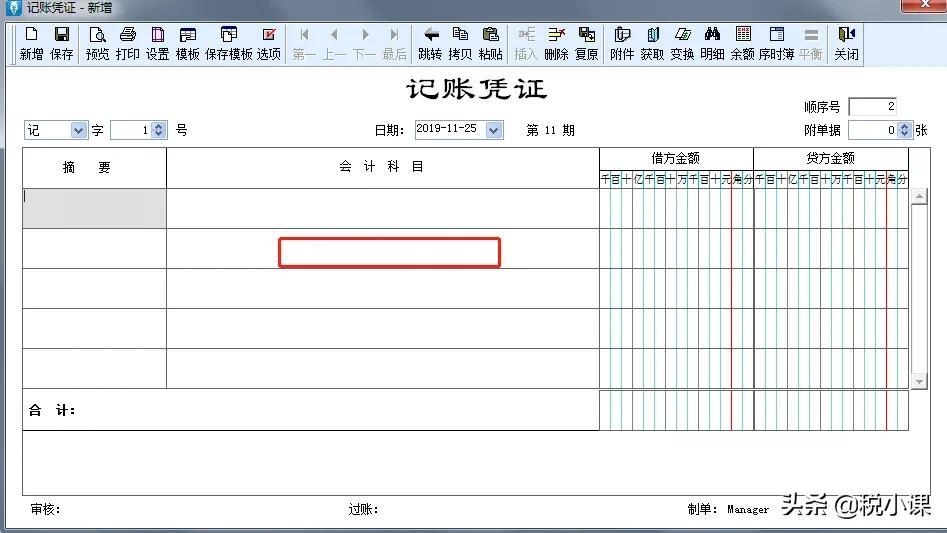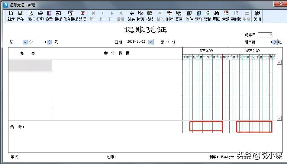 ⑫借方合计和贷方合计金额的填写。一般为自动生成,两边借贷金额必须相等,否则没办法保存。