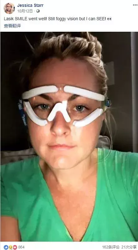 今年10月,Jessica做了全飞秒(SMILE)激光近视手术。