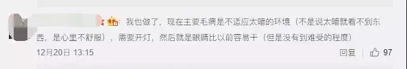 网友:现在主要毛病是不适应太暗的环境,需要开灯,然后就是眼睛比以前容易干(但是没有到难受的程度)