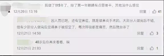 那么,那些做过手术的网友,对后遗症又有什么体会呢。