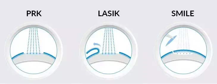 现在主要的激光手术办法有三种,Lasik、飞秒辅助Lasik、全飞秒smile。