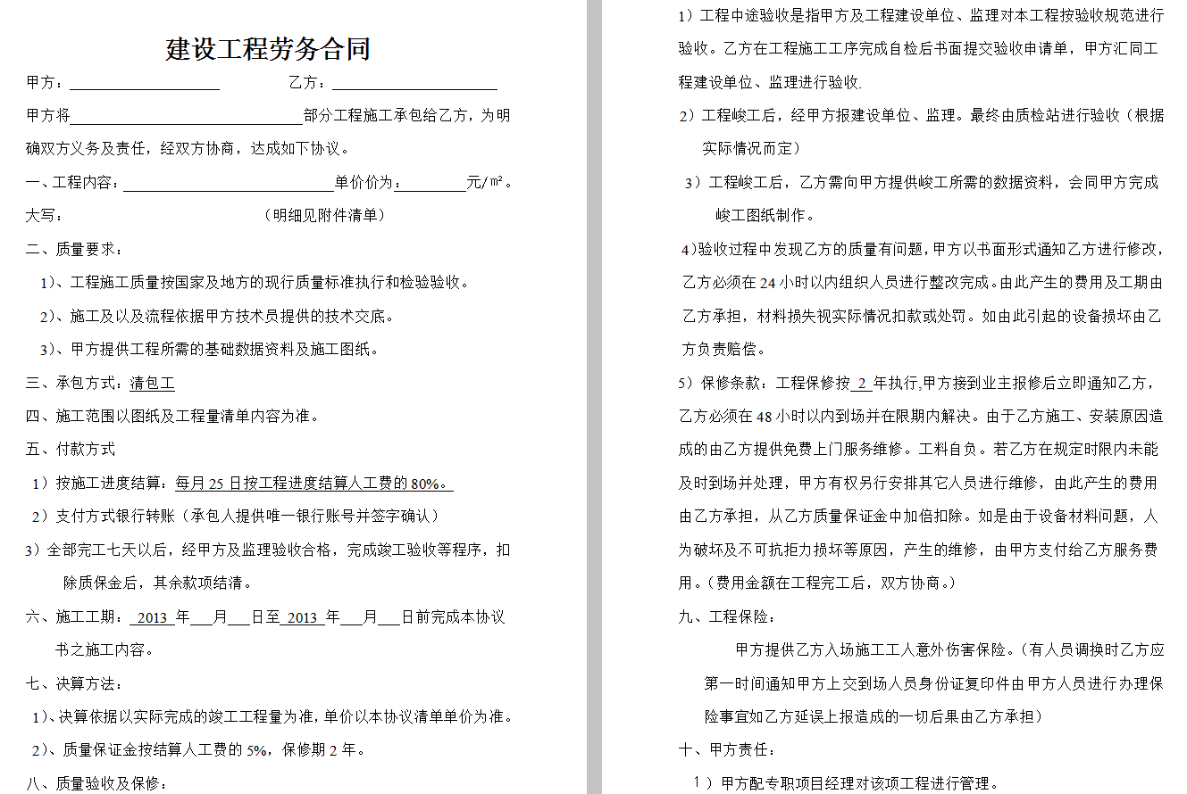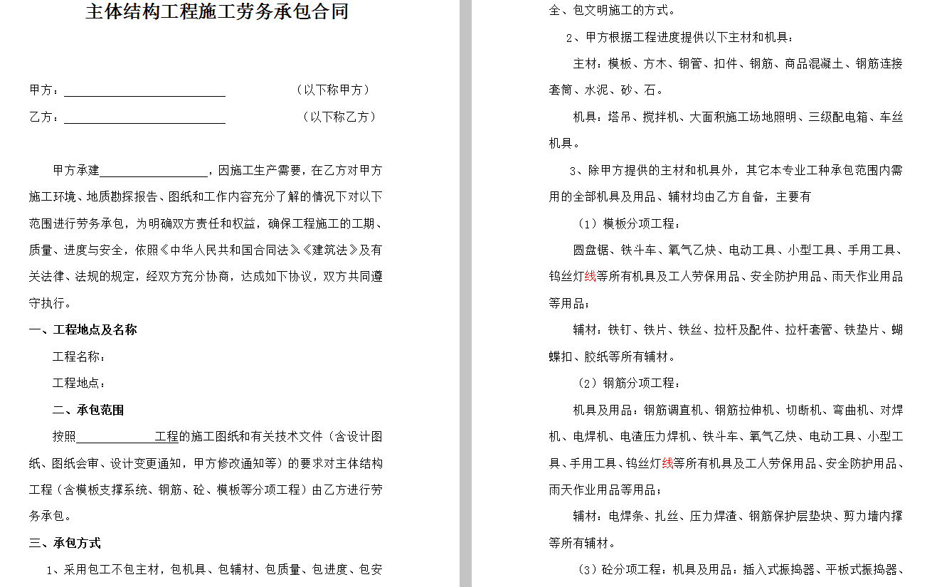本节内容:主体结构工程施工劳务承包合同,98份各工种分项施工合同。