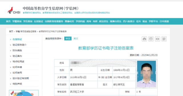 一定要认清这个网址,之前有学员找我,跟我说他花大价钱找别人急办,买的一个毕业证,让我鉴别一下,发过来我一查,结果没有查到,后面才弄清楚,结果是个假的,他找的不良贩子结果上当受骗,后续在这里就不讲了。