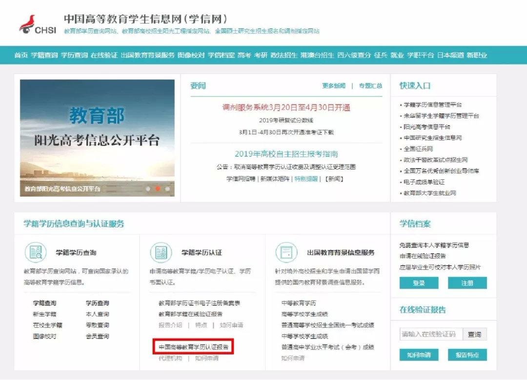 第一步:学信网首页,进入“中国高等教育学历认证报告”
