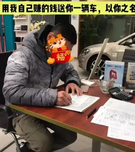 但这些还不够,最后的一件大礼,是女孩用赚的钱给男友买了一辆车。