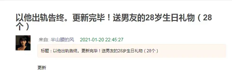 可结果呢?过几天再看这个帖子,只剩一个标题:以男方出轨结束。