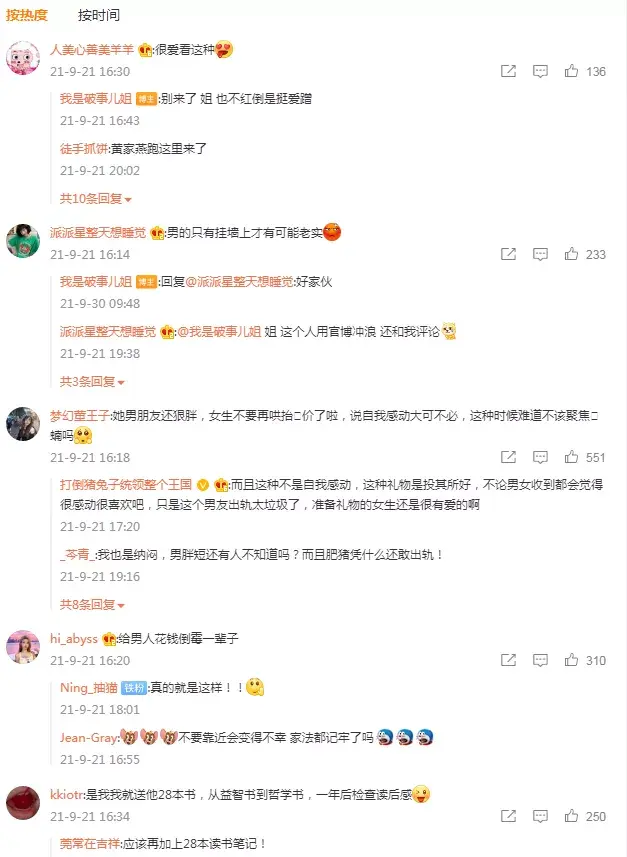值得一提的是,在两人逛街时,男方曾说要给女孩买巧克力,然后女孩为了制造惊喜,以“不喜欢”为借口拒绝了。