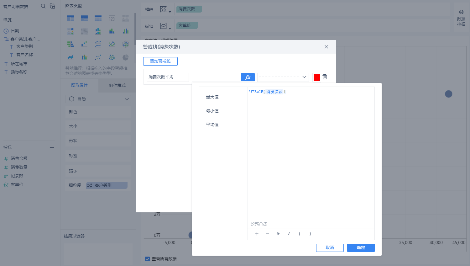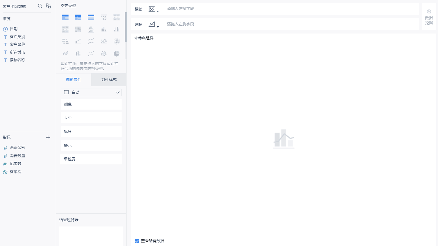 拖动刚才计算好的客单价计算指标进入纵轴: