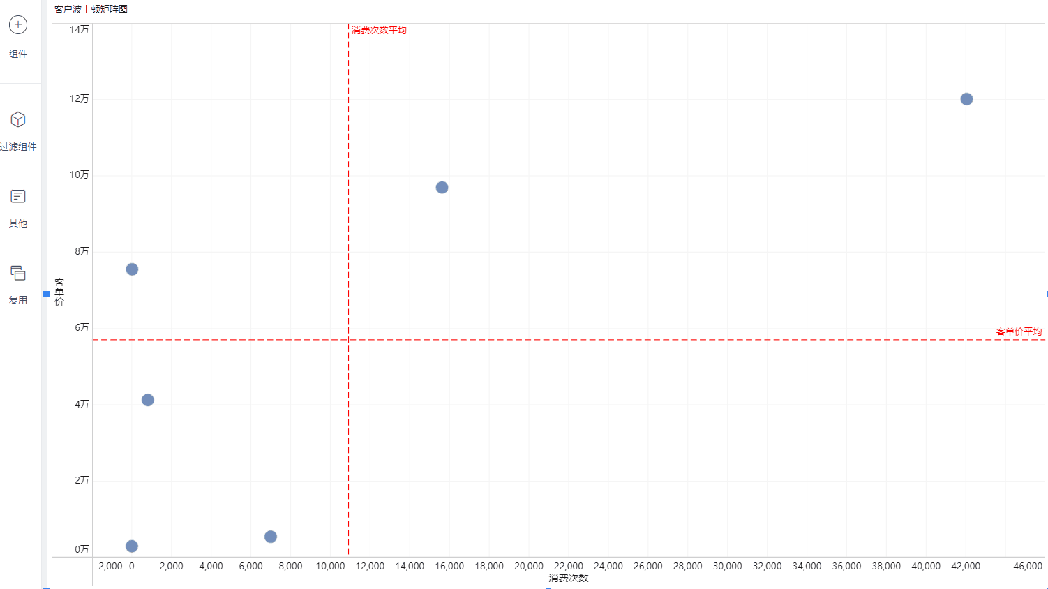 在刚刚介绍的波士顿矩阵图的基础上,FineBI工具还可以根据其他维度对客户进行多维分析: