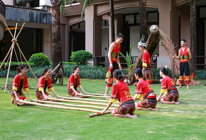 年轻靓丽的黎族小姑娘和小伙子们纷纷在他的回乡庆祝会上,唱起了祝贺的黎族山歌。