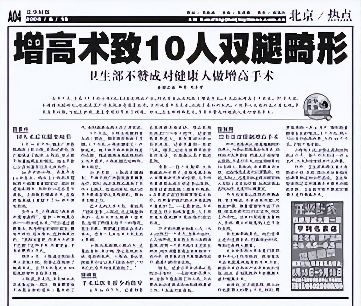 只是,有一些为了增高而疯狂的人,就有敢于铤而走险赚快钱的医美机构,两相碰撞之下,得偿所愿的人却是少之又少,更多的还是终身的遗憾。