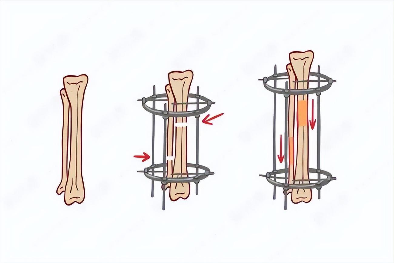 这个手术就是把腿内部已经闭合的骨骼生长线重新给“打开”,并在腿部外面装一种具有牵伸作用的肢体延长器,根据每个人的体制不同,每天可能会以0.5毫米到1毫米的速度将肢体慢慢的延长。