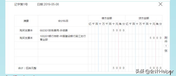 05月08日,出纳向基本户银行领取2本现金支票,工本费50元,款项直接从银行账户扣除。