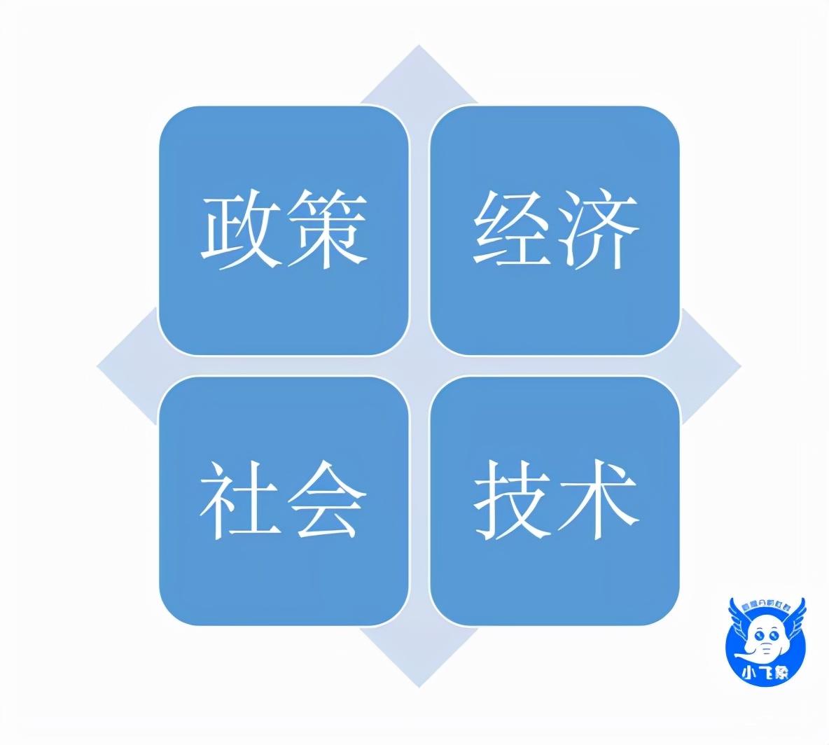对某个行业的宏观环境进行多维度分析,主要就是四个维度:P是政治(Politics),E是经济(Economy),S是社会(Society),T是技术(Technology)。