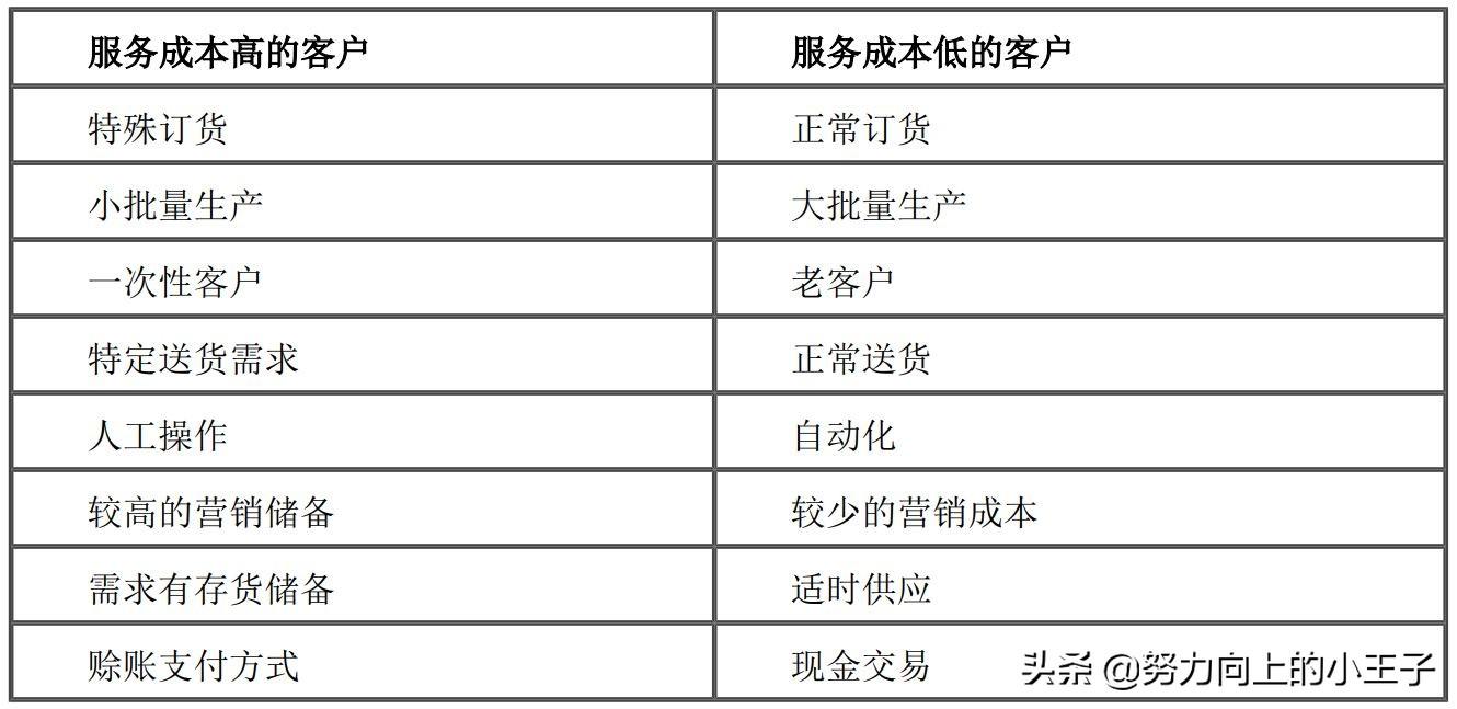 B类顾客:高成本、高盈利,依据收入补偿成本原则,努力争取这类客户;