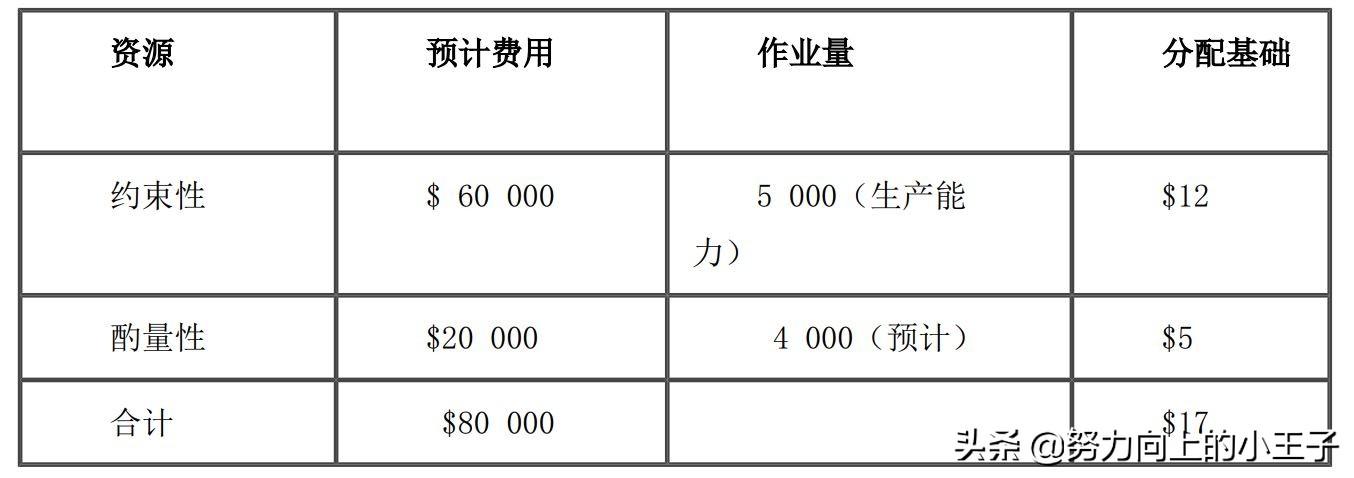 例如:生产准备次数,订单数量、设备调试次数,业务动因计量成本最低,但准确性最差。