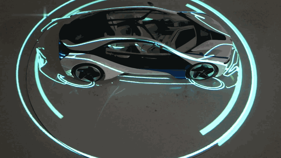 通过手机或平板控制汽车360°旋转展示,结合投影技术,炫酷的色彩与光线实时跟踪汽车的旋转而变化。