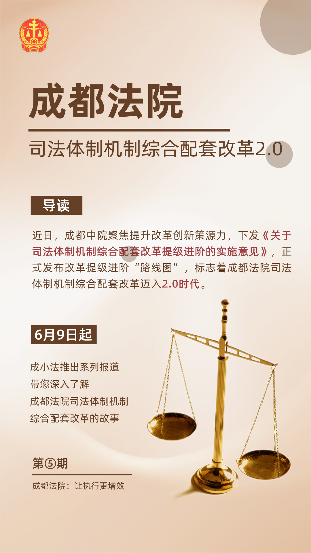 “执行是人民法院司法工作的最后一环,也是胜诉当事人兑现自身合法权益的曙光和希望,直接关系到人民群众对法院工作的感知和评价。执行‘一体化’改革是成都法院贯彻中央和最高法院决策部署、坚持以人民为中心发展思想、回应人民群众司法新需求的创新之举。成都法院坚持司法为民、公正司法理念,通过执行‘一体化’改革,做到每一件执行案件查控到位、处置到位、兑现到位,对‘老赖’依法打击到位,打通服务群众的‘最后0.5公里’,让人民群众切实感受到公平正义就在身边。”成都中院党组副书记、副院长李光旭介绍。