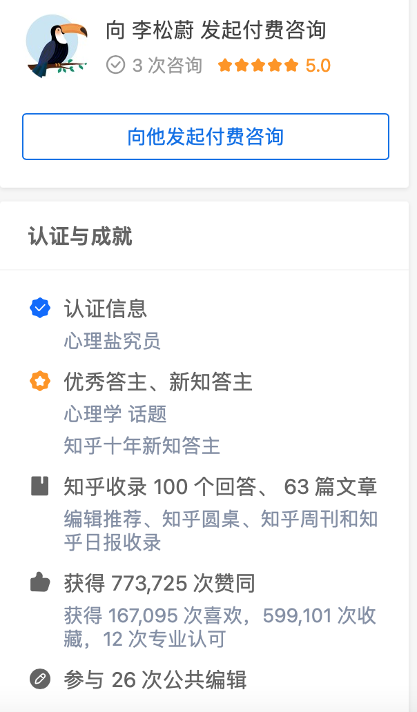 比如《荒野会谈》中的李松蔚,他是北大毕业的心理学工作者,因为在知乎上长期回答心理学话题的问题,得到了很多用户的喜欢。