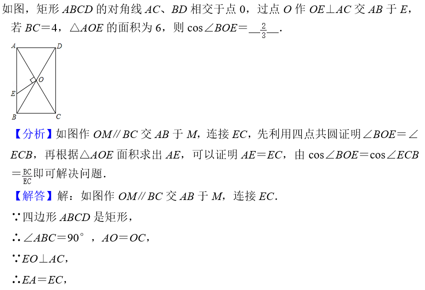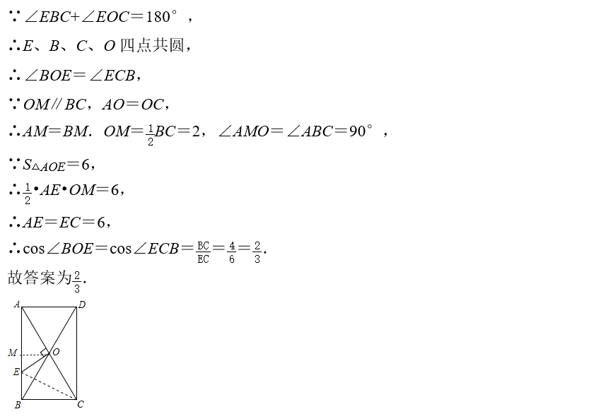 本题考查矩形的性质、四点共圆的判定和性质、三角形面积公式等知识,解题的关键是利用四点共圆证明∠BOE=∠ECB,学会转化的思想,属于中考常考题型.