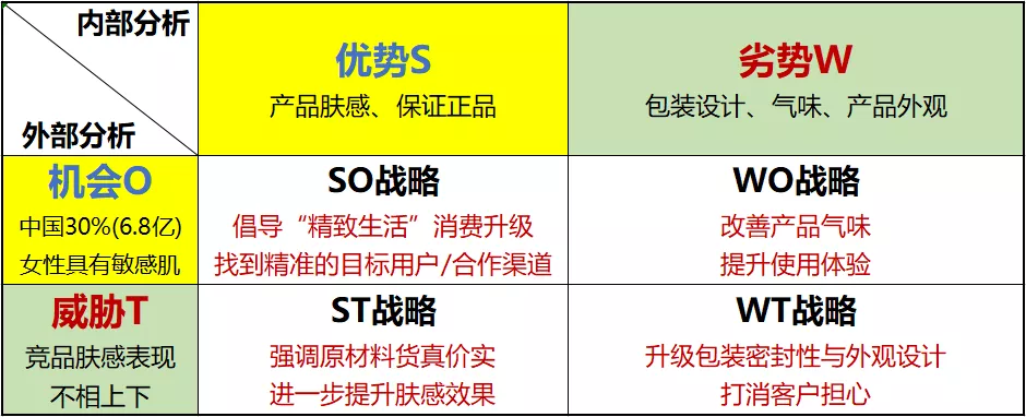通过上述的指标对比,我们可以得出Freeplus在3款敏感肌洗面奶中的SWOT分析表: