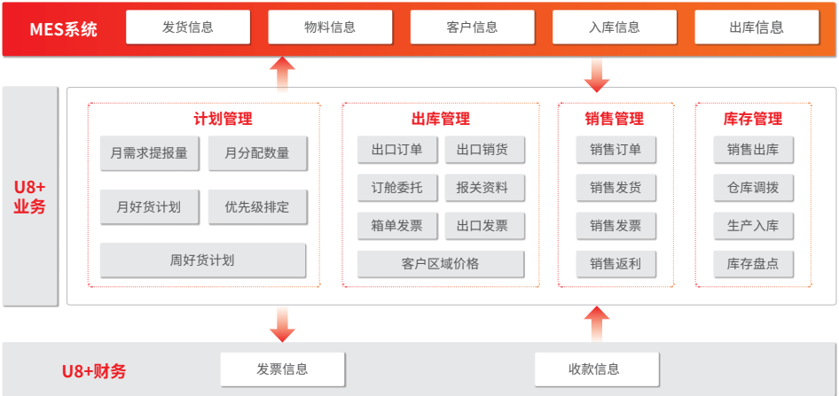 通过 U8+管理系统与 MES 系统的集成,以订单为导向,分析订单毛利,根据毛利进行产品优先级排产。最大化利用产能,通过计划控制发货,提高了对客户订单交付能力,提高客户满意度。U8+与 MES 库存实时联动,提高了工作效率。