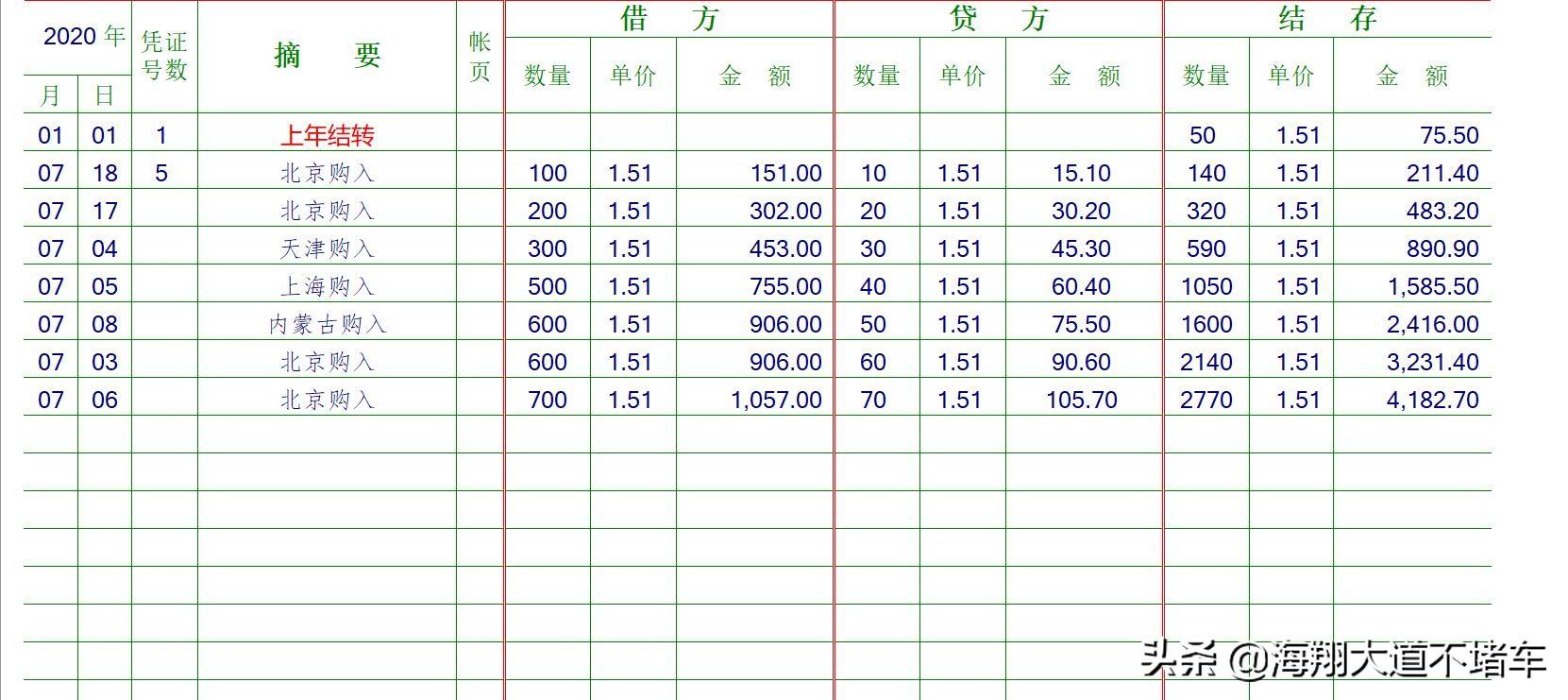 可以看到下面的《原材料明细账》,就是同时采用了数量和金额两种计量单位。不同的岗位用到不同的计量单位,例如车间、仓库只需要用到数量单位,而采购和会计则需要同时用到两种计量单位。